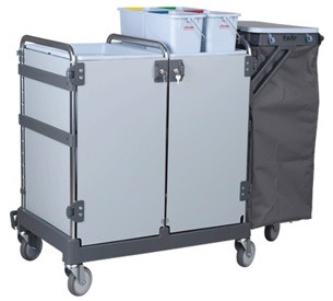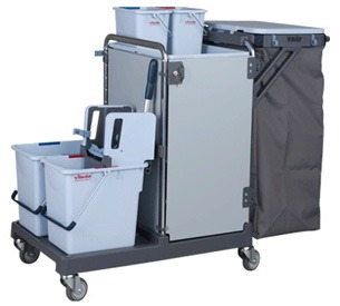 Existe uma larga gama de acessórios por onde escolher: bandejas, baldes, calhas, tampas, caixas para mopas, suportes para mopas, suportes de cabos, prensas, ganchos e muitos mais. Um Carro de Limpeza. Milhões de possibilidades.