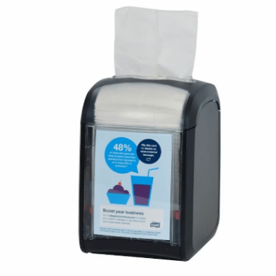 • Um dispensador duradouro e fácil de limpar que reduz o tempo de manutenção e protege os guardanapos da sujidade